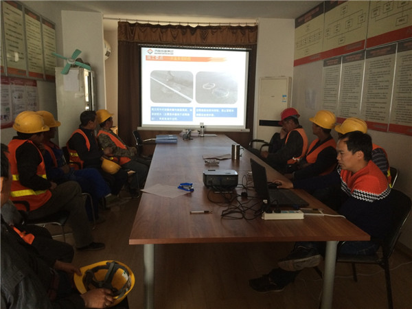 為此,濟(jì)南市市政工程有限公司緯十二路項(xiàng)目部進(jìn)行周密策劃,精心準(zhǔn)備,首先協(xié)助建設(shè)單位召開封閉施工新聞發(fā)布會(huì),然后向沿線單位及小區(qū)居民發(fā)放公示信;針對(duì)路口檢查井蓋較多的情況,項(xiàng)目部提前通過PPT課件和視頻教學(xué)的方式組織民工進(jìn)行防沉降井蓋提升的施工及安全技術(shù)交底工作,確保瀝青面層攤鋪順利進(jìn)行。