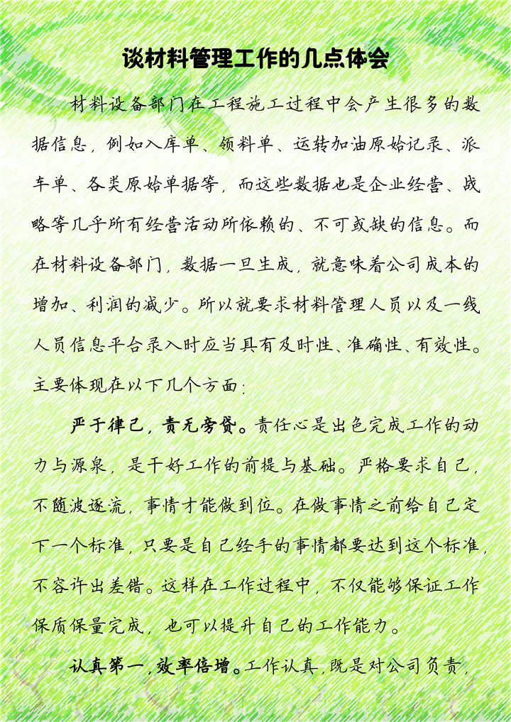 談材料管理工作的幾點體會
