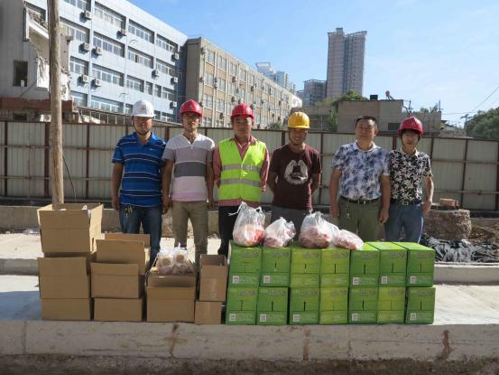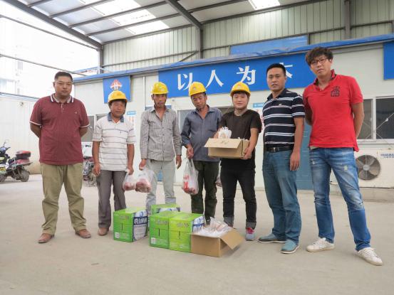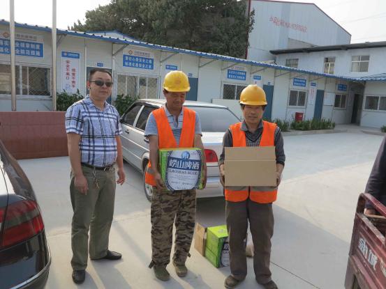 公司為農(nóng)民工隊(duì)伍送去了大米、精肉、月餅、酒等節(jié)假日用品