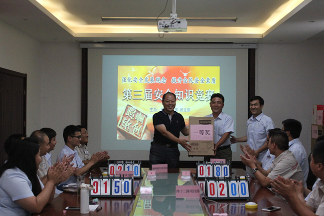 知識競賽7組參賽小組分別由公司各項目部經(jīng)理帶隊,項目總工及安全員組成,經(jīng)過必答題、搶答題、風險題及趣味知識題等多種題型的激烈角逐,一線青工既鞏固了平日所學知識,也擴大了知識面,及時做到查缺補漏。通過公司領(lǐng)導在活動當中對安全工作的指點及要求,各項目部人員對公司的各項要求加深了印象,也把握住了今后安全工作的重點。