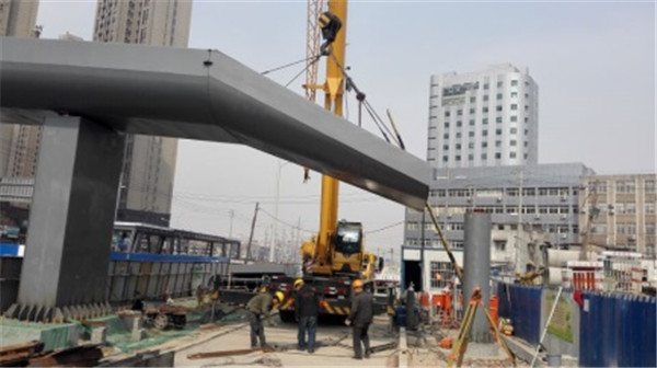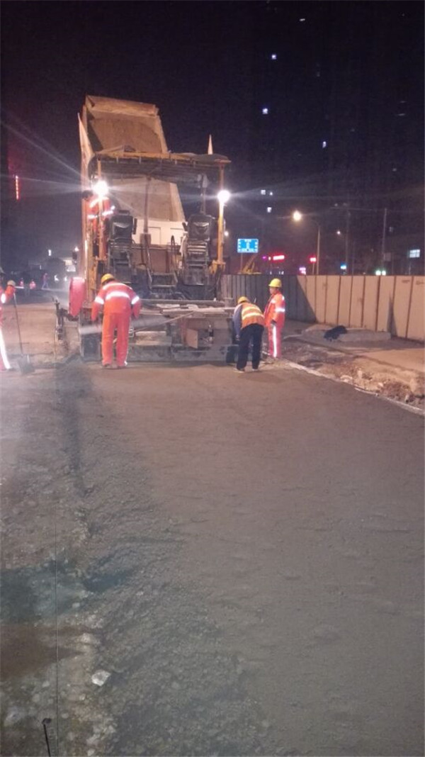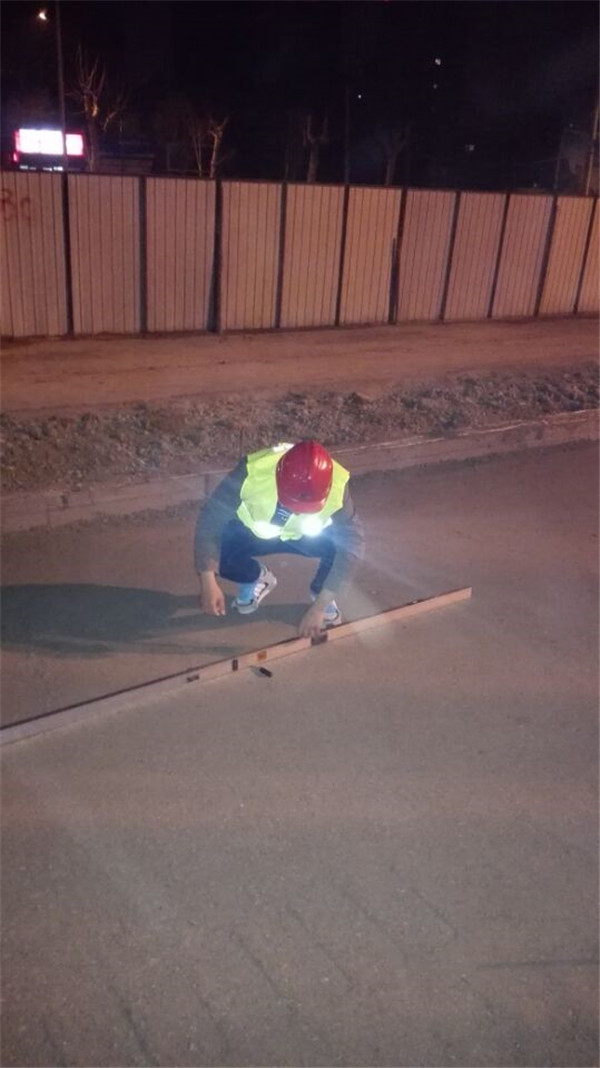 3月21日,緯十二路道路工程經(jīng)五路人行天橋進(jìn)行梯道安裝,慢車(chē)道進(jìn)行水穩(wěn)攤鋪施工。